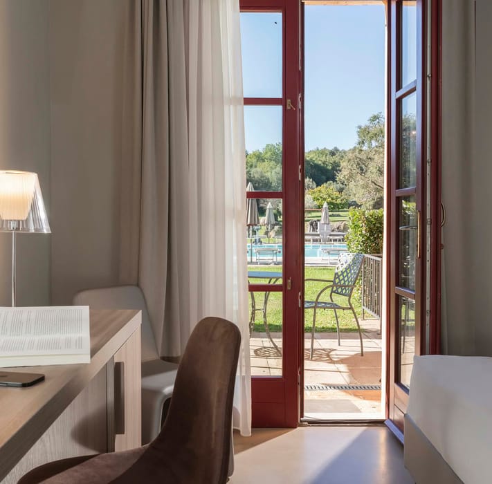 Le nostre camere uniscono comfort ed eleganza nelle forme a tocchi vivaci e contemporanei nei dettagli. Se cerchi più indipendenza, gli appartamenti della Villetta Terre Rosse offrono ampi spazi e la comodità di vivere la Toscana secondo i tuoi ritmi.
